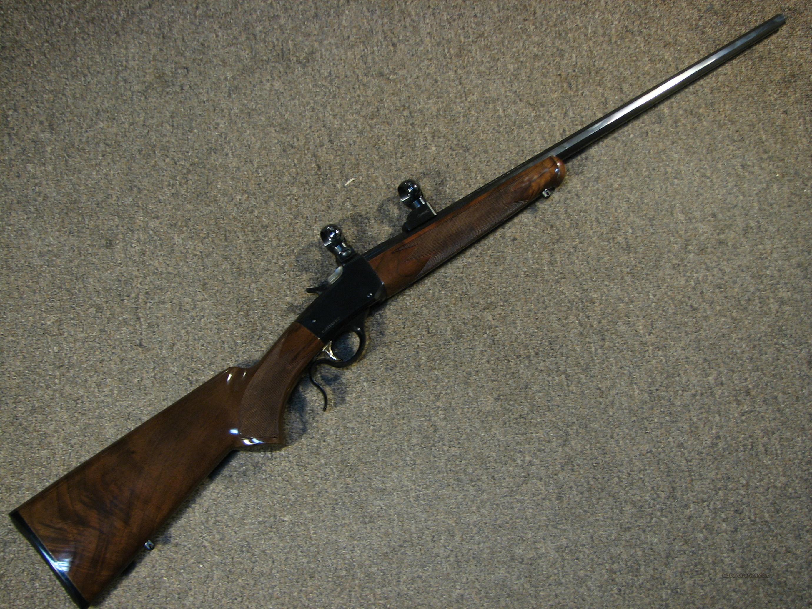 24 octagon barrel satin finish Grade I single shot. My Low Wall 22 Hornet is easily the most accurate rifle I own with the load it prefers averaging under 12 for five shots at 100 yards. Low Wall with tang.